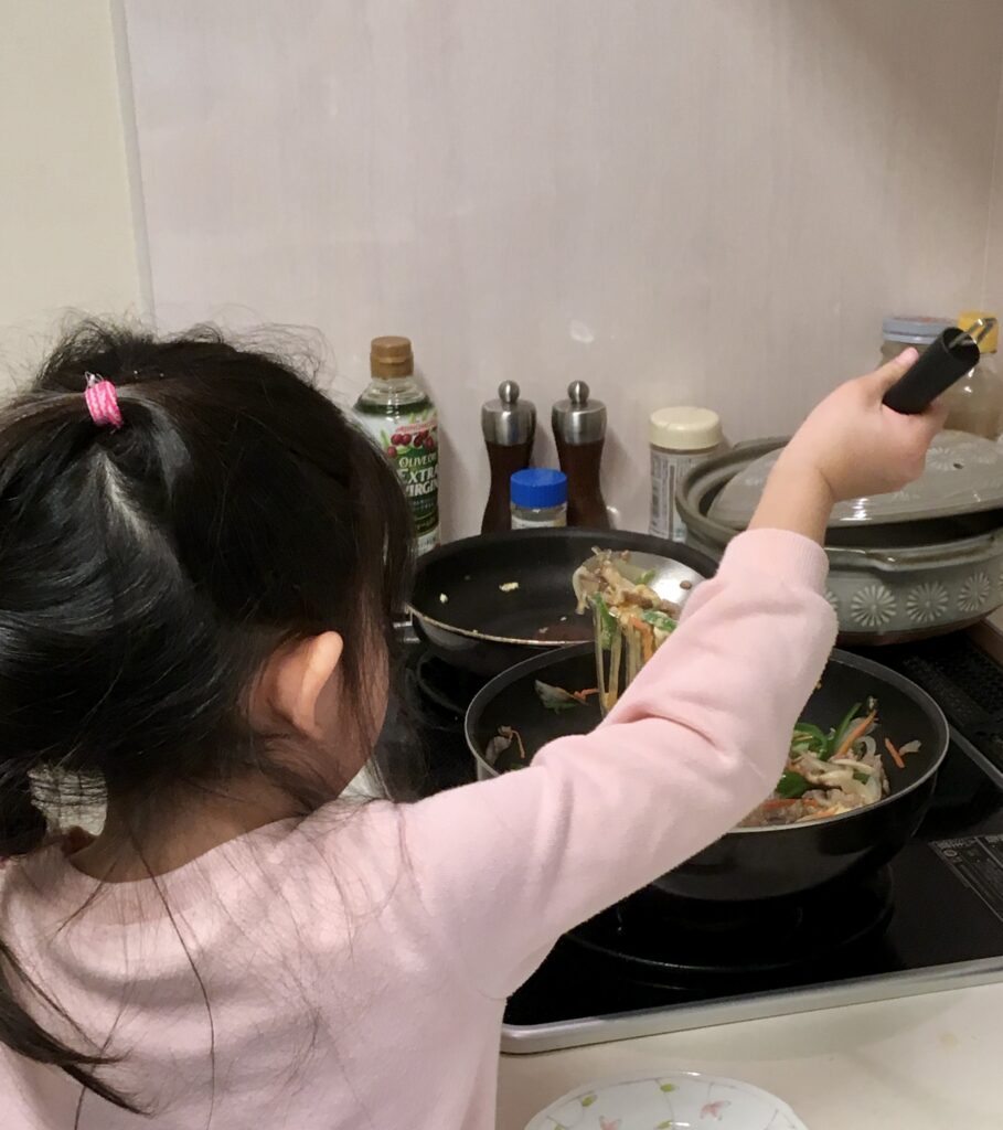 夫より料理歴が長い長女。春雨炒め(3歳)。