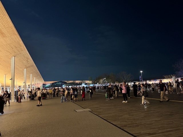 ・夕方からの時間で大屋根リング1週は難しかった。すでに混雑しているし、18時30分の花火以降は歩くのも難しいときがある。