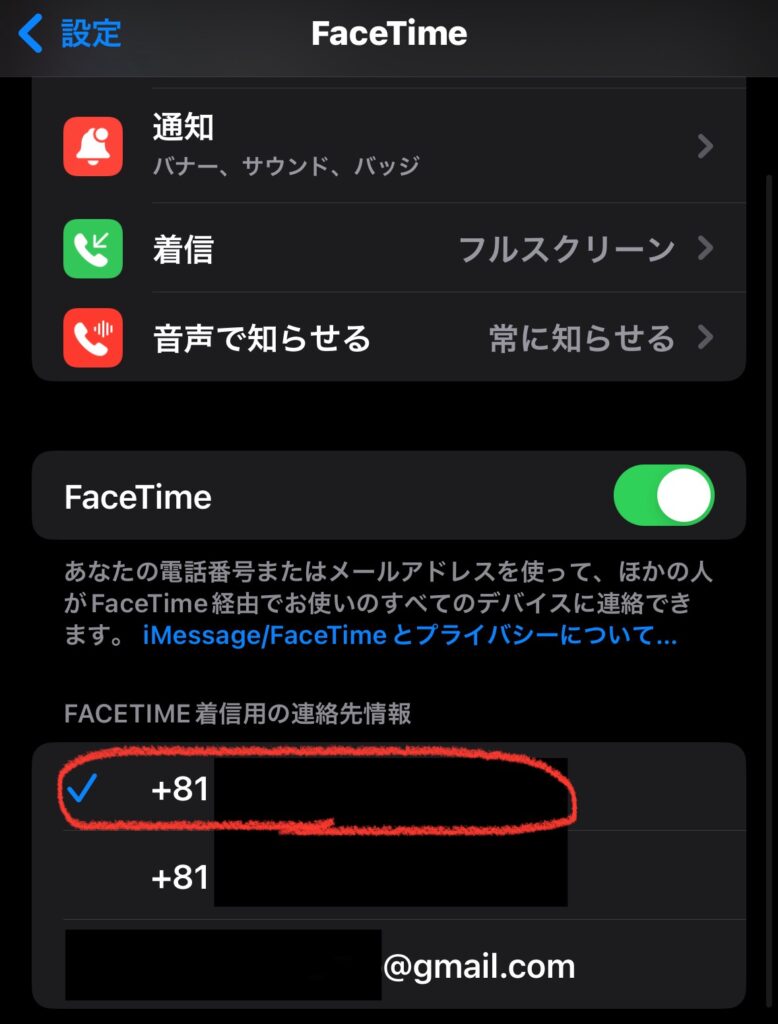 「設定」>「FaceTime」> 「FACETIME着信用の連絡先情報」