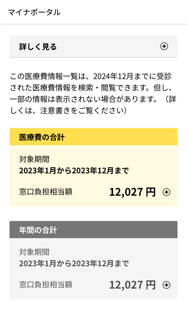 マイナポータルでは、利用者本人の受診情報や金額が載っています。