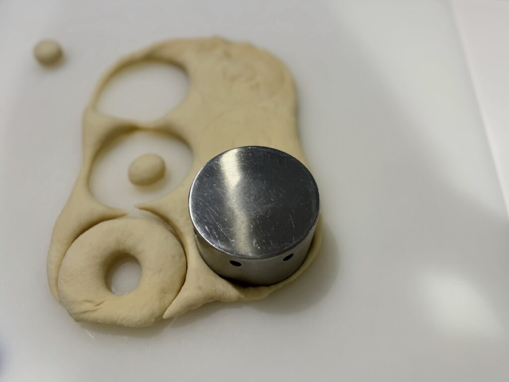 まずは、ドーナツ生地を伸ばします。そして型抜き。一人3つずつ。