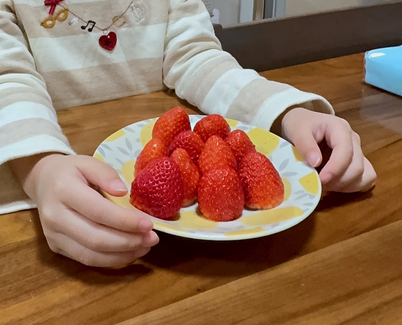 明日からまた平常運転に。いちご10個食べてる姿を見て回復を確信しました。